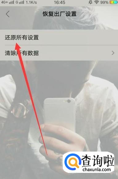 进入之后,选择“还原所有设置”,如图所示。