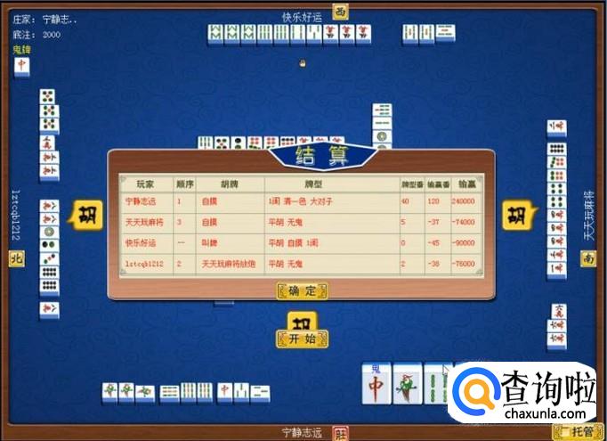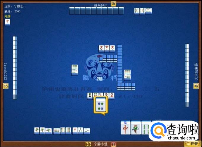 庄家和玩家通过机器桌洗牌,形成了清者自清牌局,庄家和玩家将在即将进行的清者自清牌局中,鬼斧神工,血战到底。如图所示。