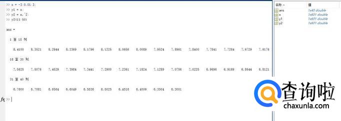 首先生成x,y1,y2的数据。x的范围是[-3,3],y1=x,y2=x^2。如图为代码以及部分数据