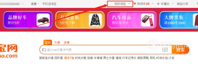 打开电脑淘宝网页,点击【我的淘宝】: