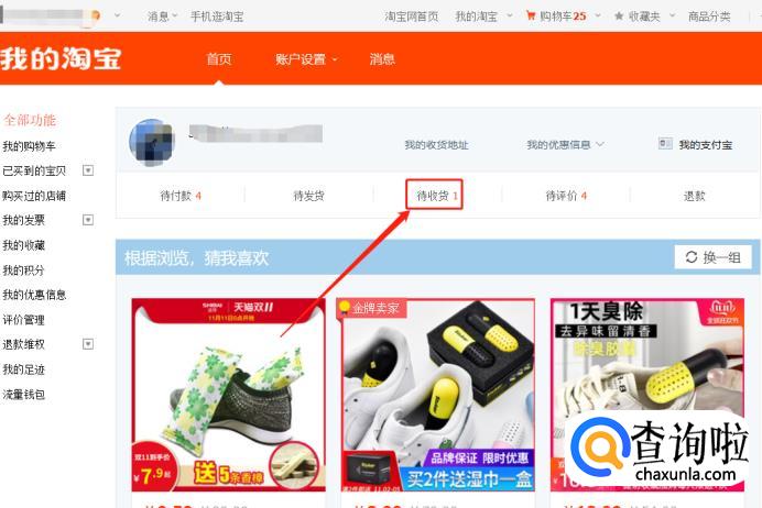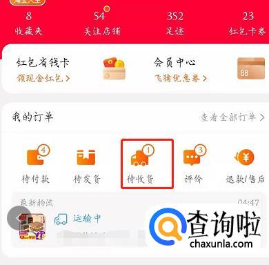 进入我的淘宝主页,点击【待收货】: