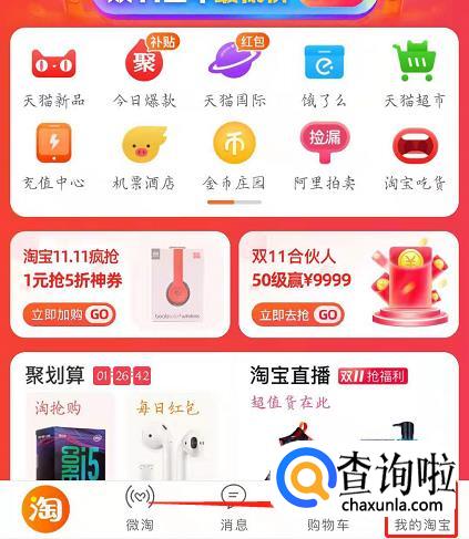 如果没有短信,首先打开手机淘宝,点击【我的淘宝】: