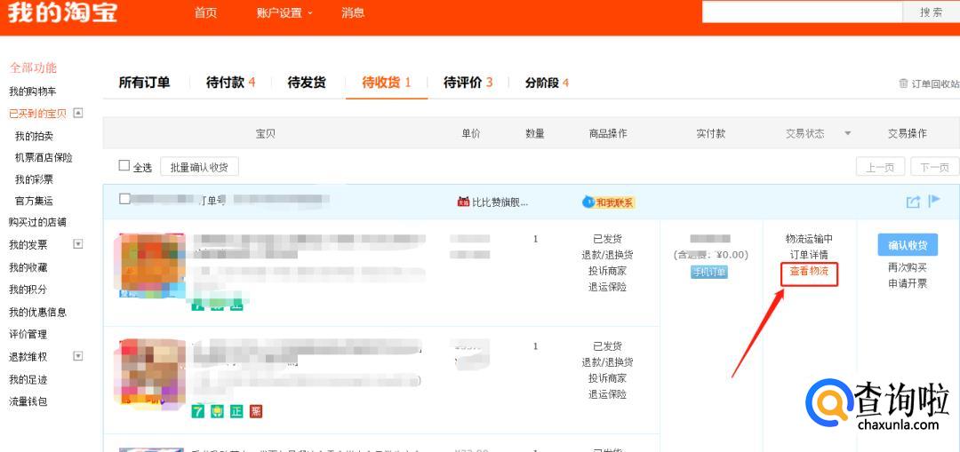 找到自己要查询的快递,点击【查看物流】:
