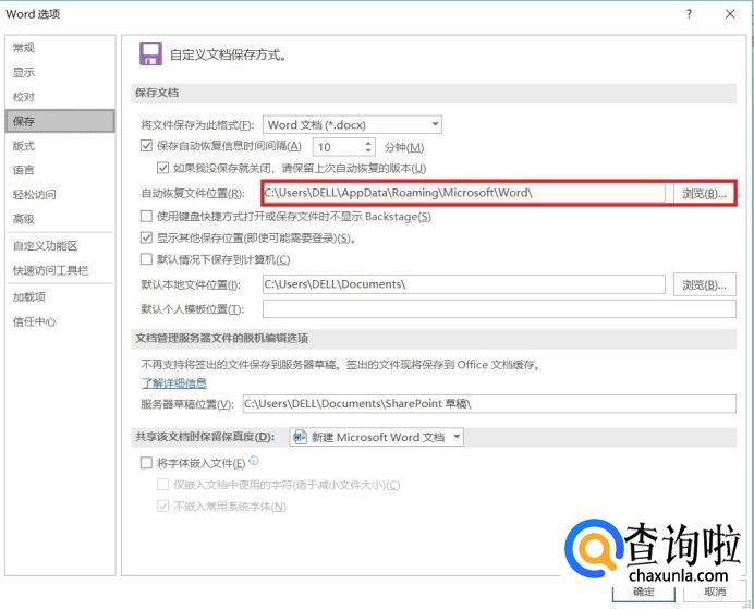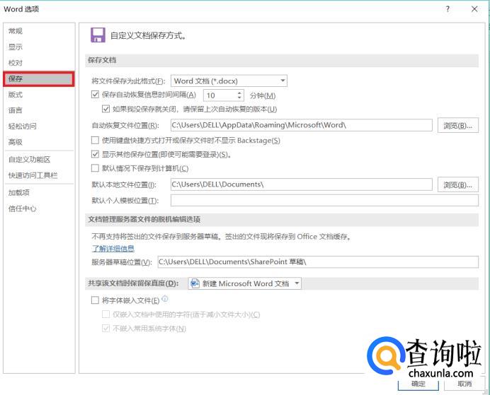 在弹出的word选项对话框中选择“保存”。