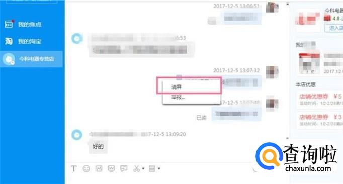 然后随便点击聊天对话框中的空白的地方,点击清屏就可以了。