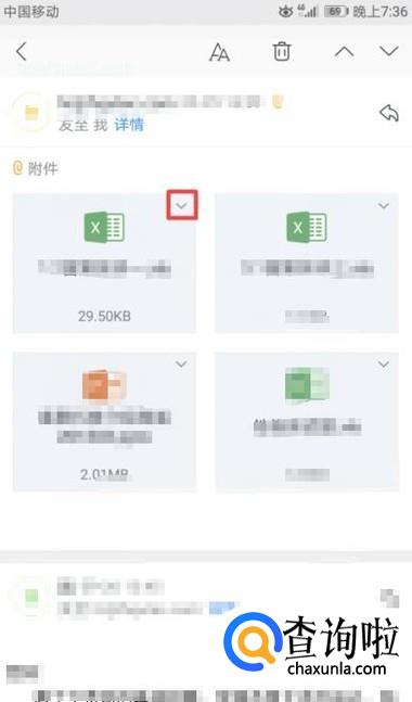 弹出的界面,我们点击其中一个附件上方下拉箭头;