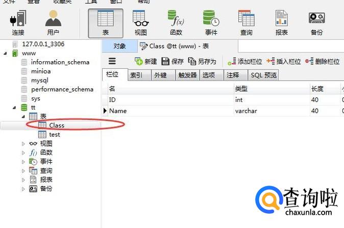 在表的下方就会出现一个名为Class的表,如下图所示: