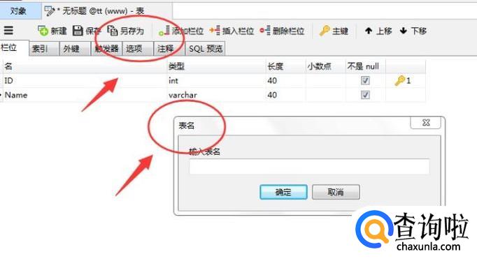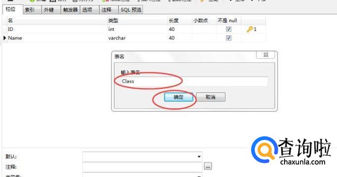 点击【另存为】,会弹出一个【表名】窗口,输入表名,比如Class,点击【确定】按钮,如下图所示: