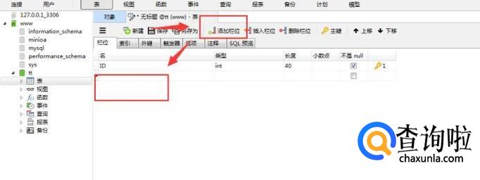 选择新建表之后,在界面右侧可以添加数据,点击【添加栏目】就可以在下方再添加一行数据,如下图所示:
