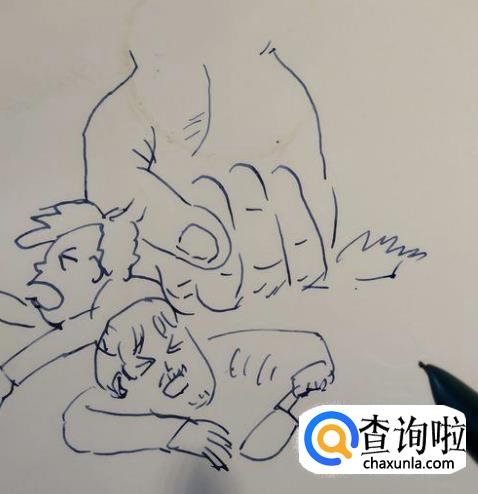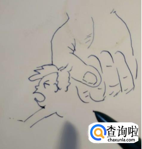 然后我们在大拇指下面画一个趴着的小人。