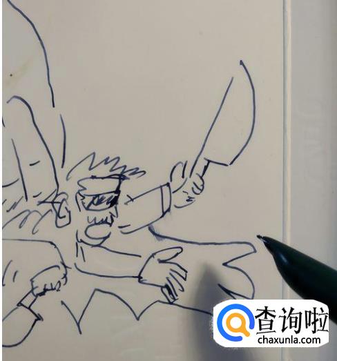 再在旁边画一个拿着刀,嘴里叽叽歪歪不知道嚷嚷什么的小人儿。