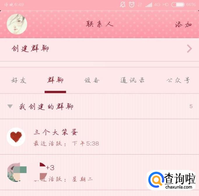 打开QQ页面,选择群聊,然后选择“我创建的群”,如下图所示