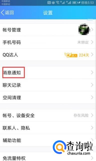 弹出的界面,我们点击消息通知;