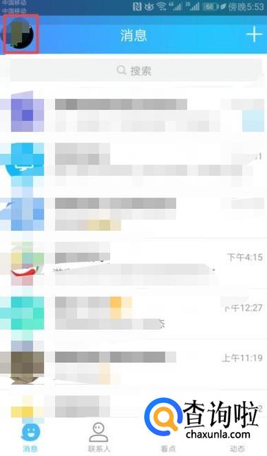 首先,我们打开我们的手机QQ,然后我们点击左上角的头像;