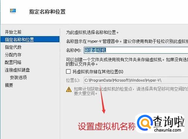 接下来填写虚拟机的名称和安装位置,如下图所示,注意安装位置一定选择可用空间大的