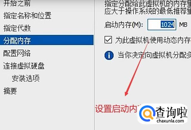 接着需要设置启动内存,这里默认是1024MB,我们保持默认即可,如下图所示