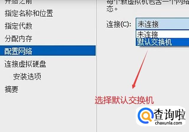 然后在配置网络中我们选择默认交换机选项,如下图所示