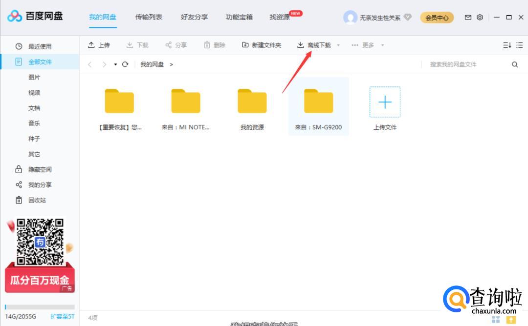 然后我们打开百度网盘选择【离线下载】。