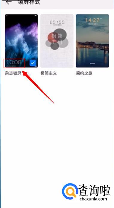 可以看到,这里使用的为系统杂志样式,且时钟处于左下角。如果已经有了时钟处于上部中间的样式,直接应用就即可。没有就进行下一步操作。