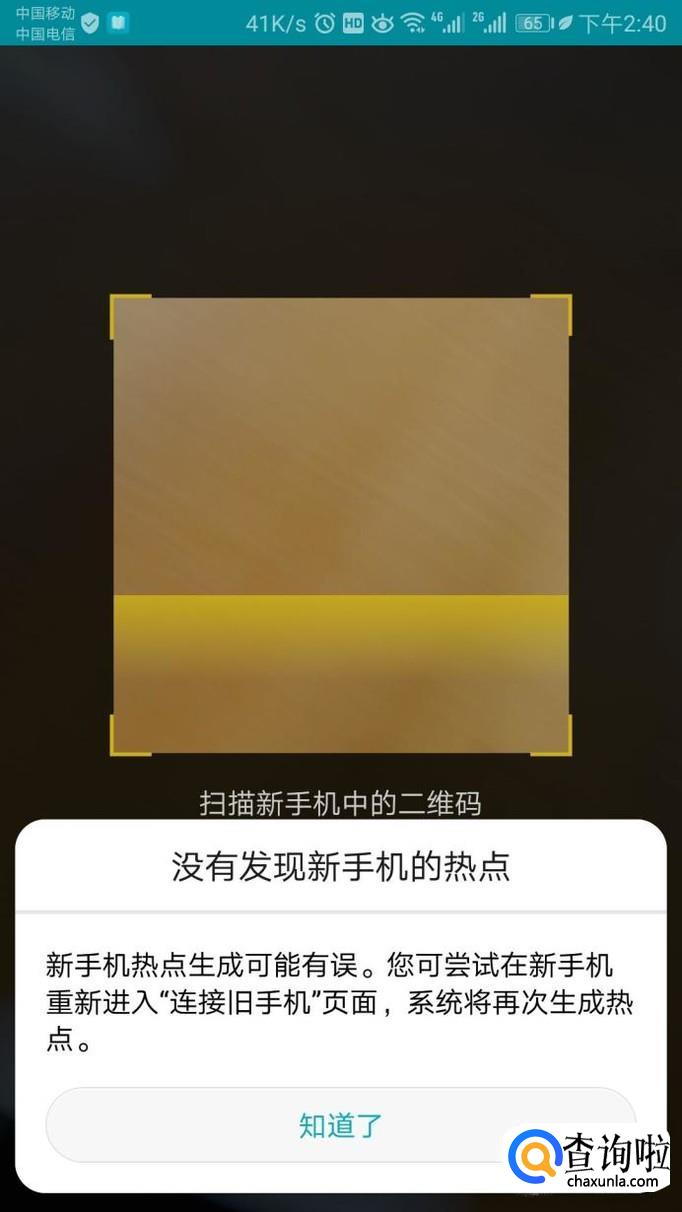 两个手机建立连接后,会有二维码生成,用新手机扫描旧手机生成的二维码即可开始两个手机文件的传输。
