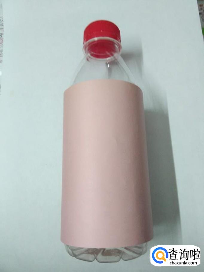 把彩纸围在塑料瓶的瓶身上,两端抹上胶棒,粘在一起。