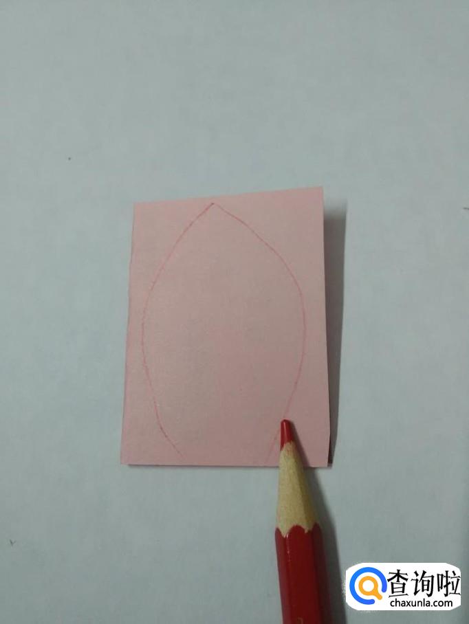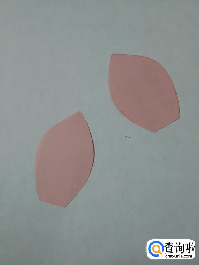 用红笔在彩纸上画两个树叶的形状,用剪刀剪下来,表示小猪的耳朵。