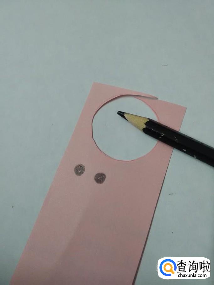 用黑笔在彩纸上画两个圆形,用剪刀剪下来,表示小猪的眼睛。