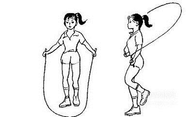 小学生在刚开始练习跳绳时,可先不用绳,直接按照跳绳的动作以无绳的方式进行练习,这样做是让学生熟悉跳绳动作,而不用因不熟练而老是绊绳。