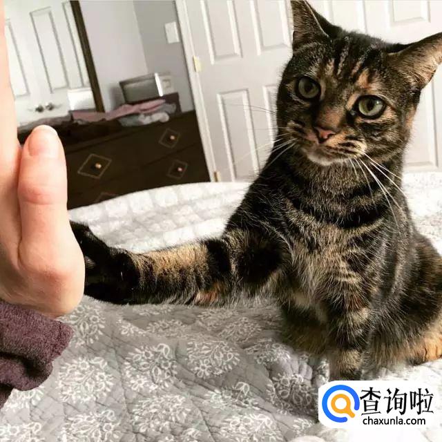 确保拿零食的手不要换,让猫咪只跟你用一边的爪子击掌。如果她们伸出手并够到了你的手,对他们说“好”,并且给他们零食。如果她们伸出了爪子或者嘴巴,就把零食拿开。就这样反复的做。