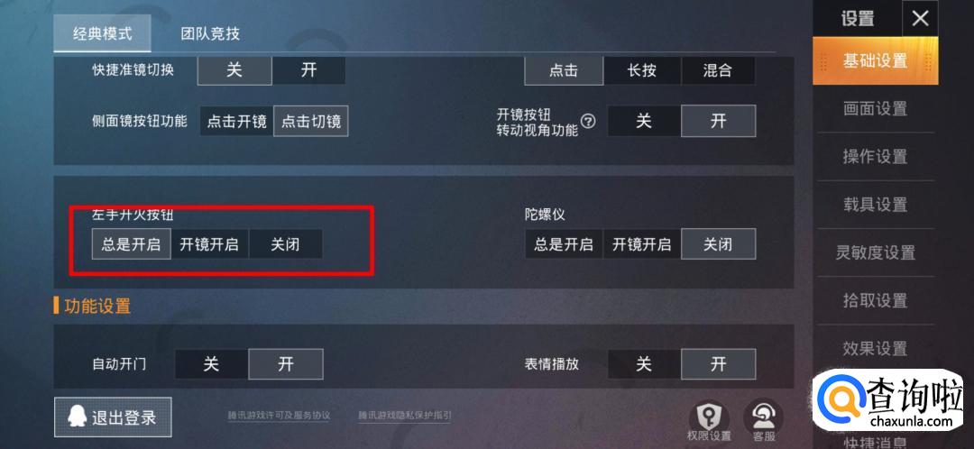 找到并开启“左手开火按钮”功能。