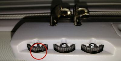 把你的密码箱放到灯光比较亮的地方,或者用手电筒照着也是行的,拨动数字,仔细观察,每组中的一个数字会显示缺口,就把它停留在那个位置,然后找另外两个组的,把三个密码齿轮下面的缺口,转到同一个方向。然后用手扣住开关,依次转动密码轮子。