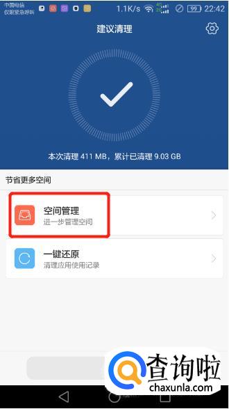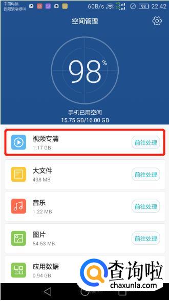 然后我们点【管理空间】,它就会自动扫描你手机上面的文件。