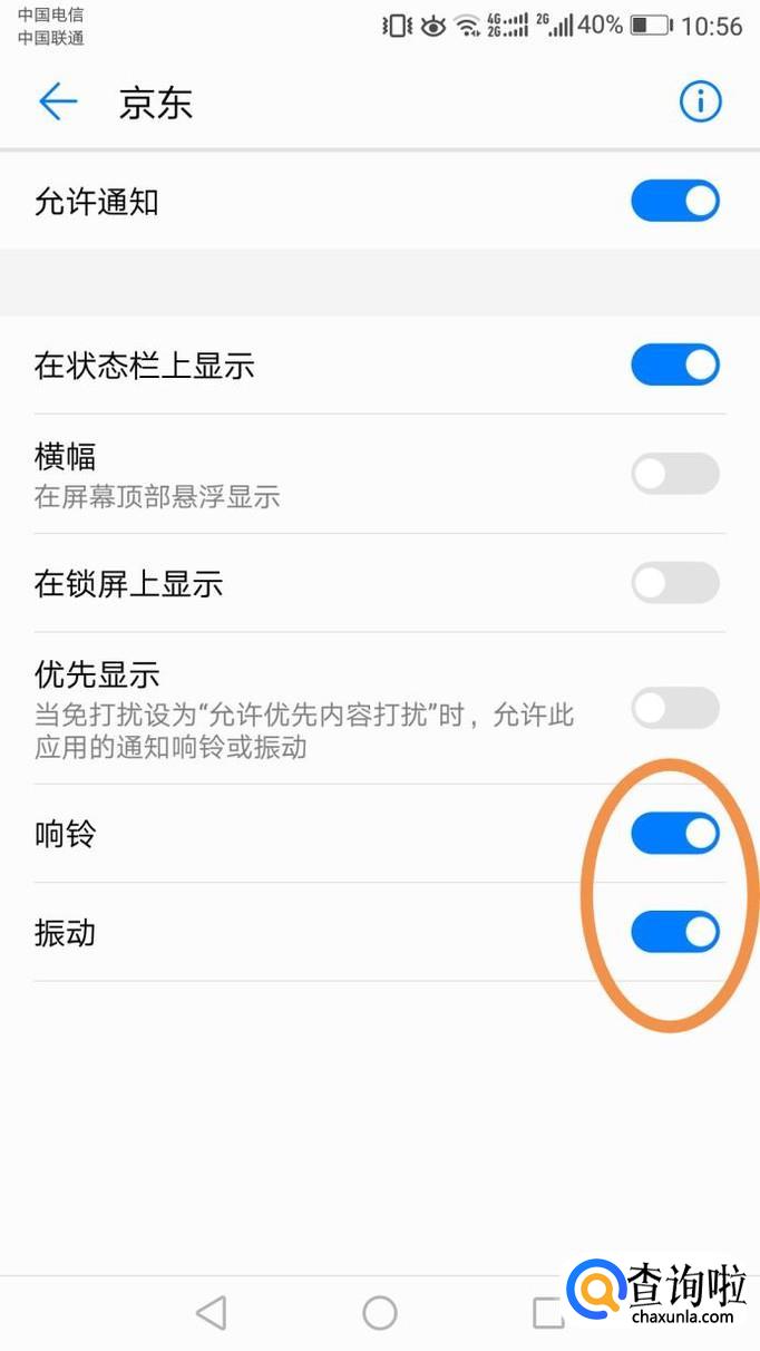 点击了“在状态栏中显示”右边的按钮之后,通知就不会在所选的状态栏中显示。如果点击了响铃和震动右方的按钮之后,就应用推送来了之后,手机就不会响铃和震动。