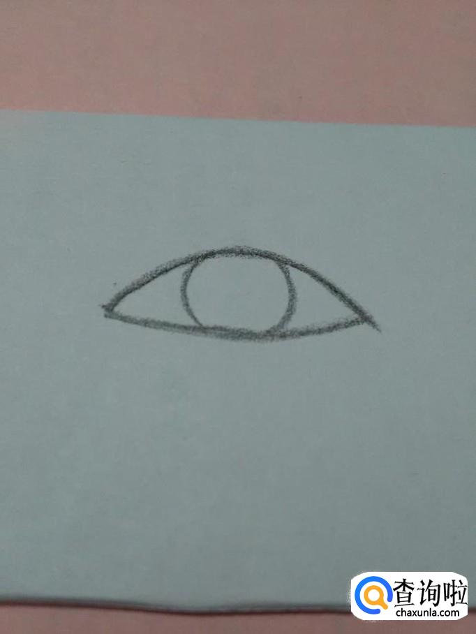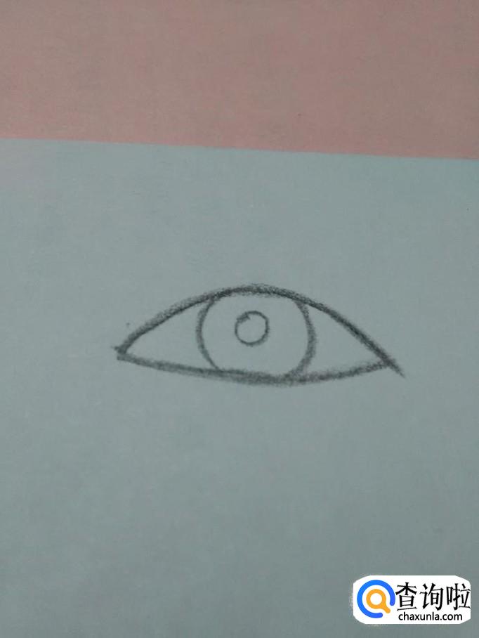 在眼珠里面,再画一个小圆,表示瞳孔。