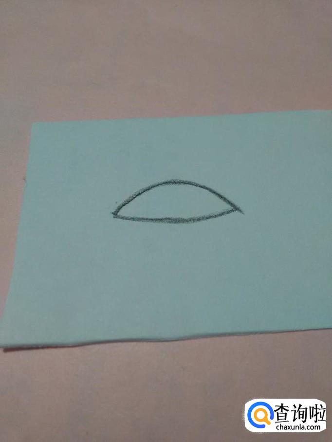 用黑笔在纸上画两条相对的弧线,表示眼睑,上面的弧线弧度要大一些。