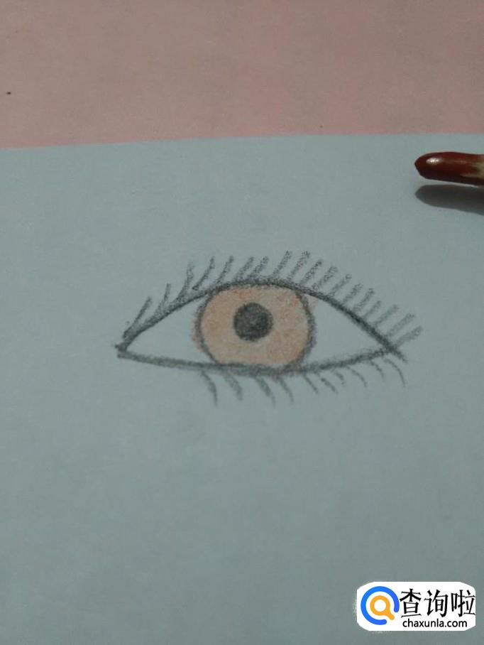 用棕色笔将眼珠涂成棕色,眼睛就画完了。
