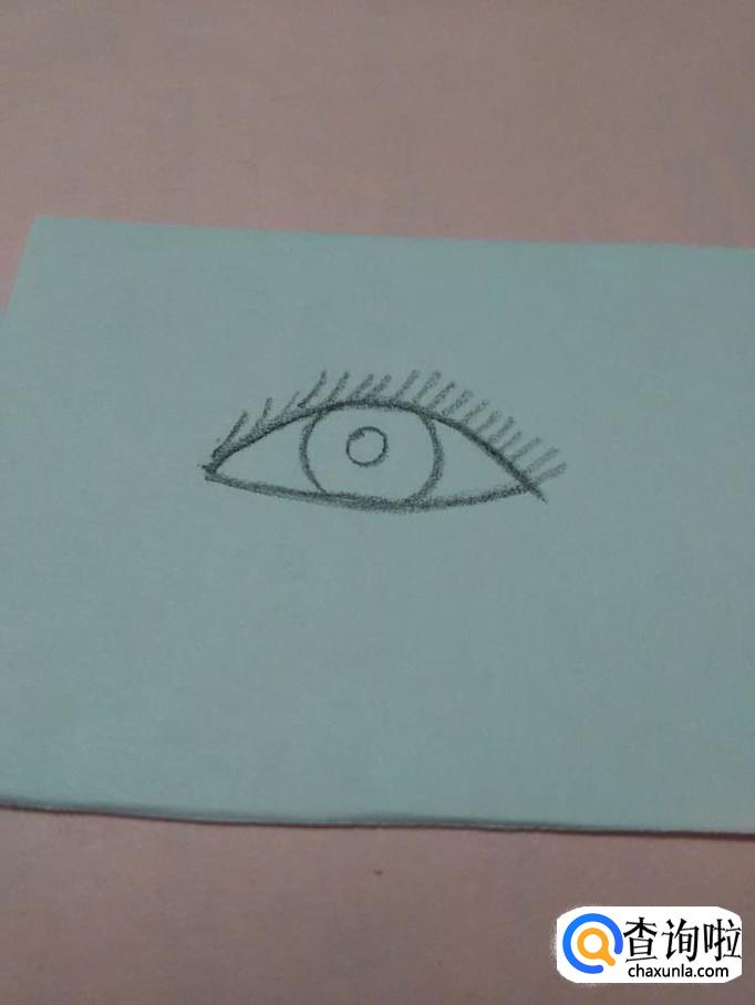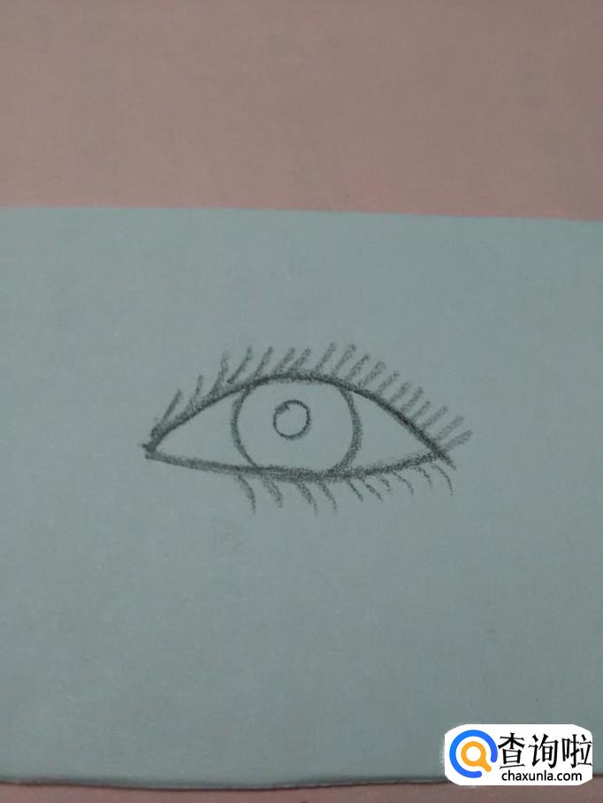 在上眼睑的上方,画一些短线,表示上眼睑的睫毛。