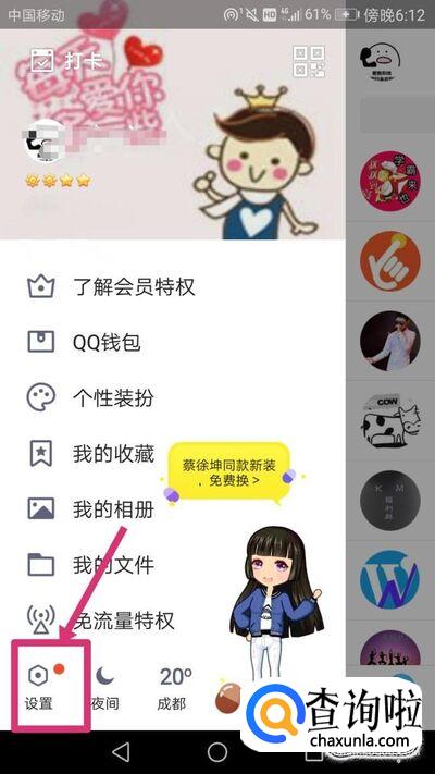 然后会出现你的资料界面,选择下方的“设置”,将其打开,如下图。