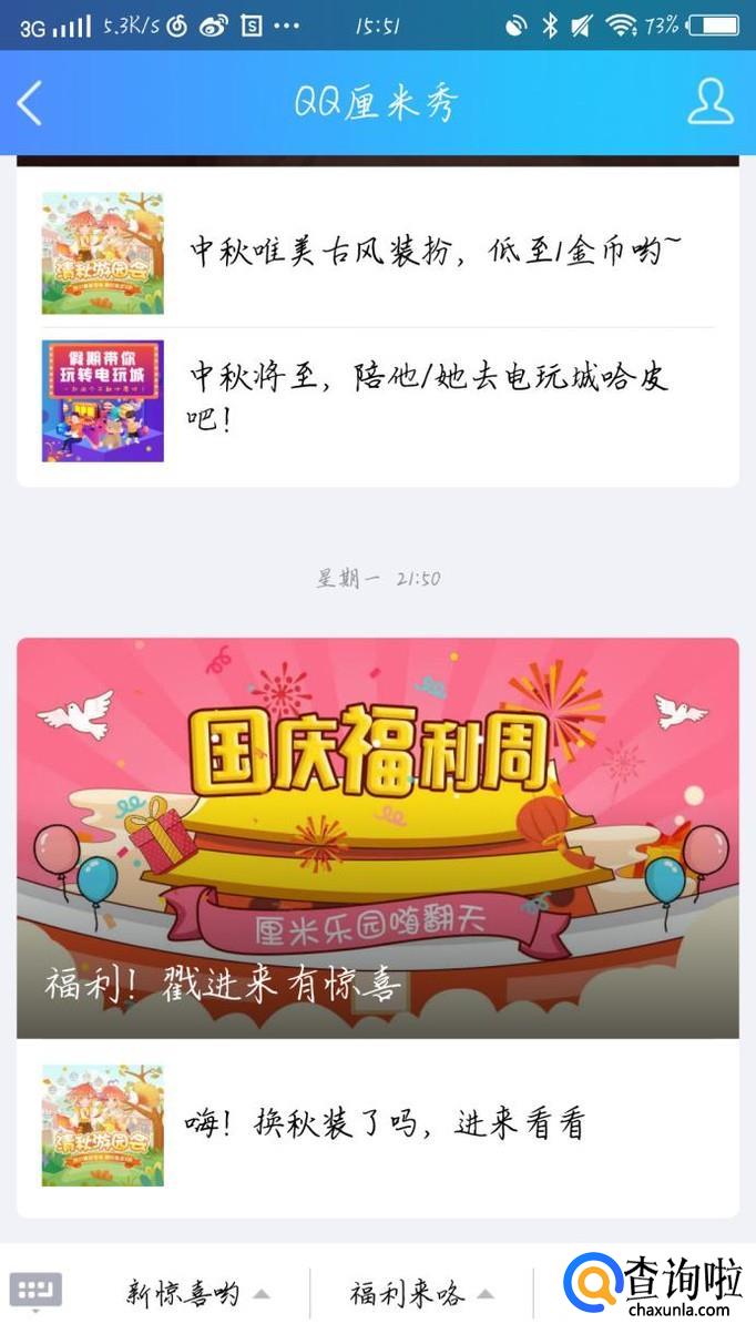 点击最上方的搜索框,在搜索框中输入“QQ厘米秀”。点击进入“QQ厘米秀”公众号,如图1所示。