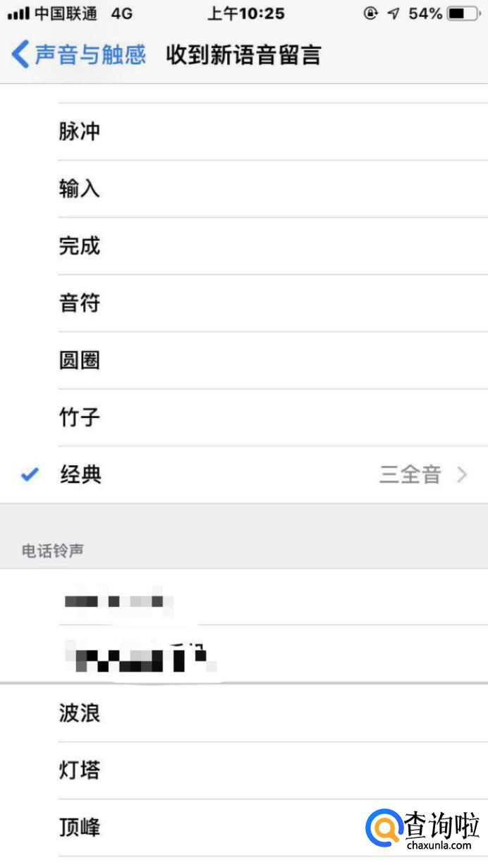 再重新返回到设置,找到“声音”选项,点击进入后找到“收到新语音留言”。