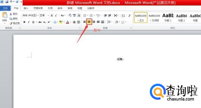 鼠标选中这两个字,在工具栏中选择“居中”。