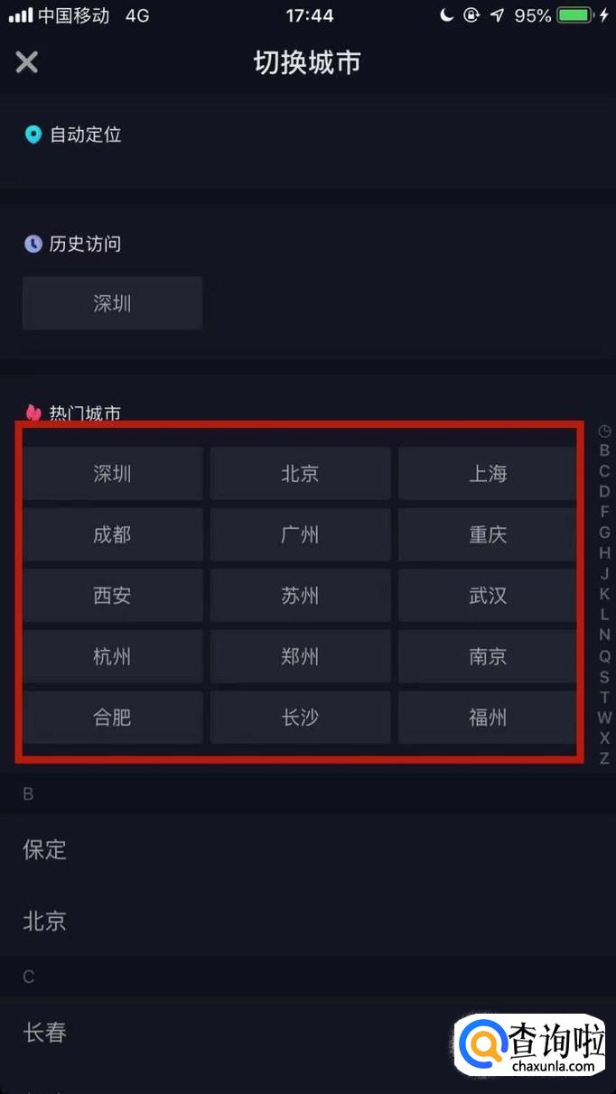 然后选择我们想要的城市就可以了。