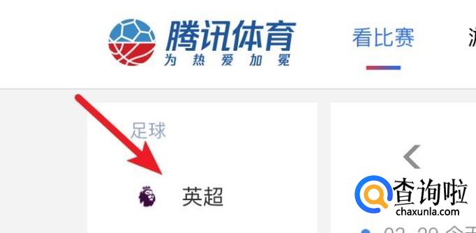 打开了腾讯直播网页后,可以看到左方有‘英超’的链接,点击打开。