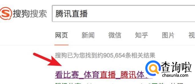 打开搜狗搜索,输入‘腾讯直播’,搜索后,点击打开官方网站。