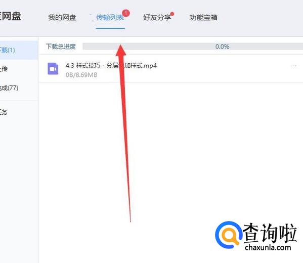 在传输列表中即可看到下载进程,如图所示。