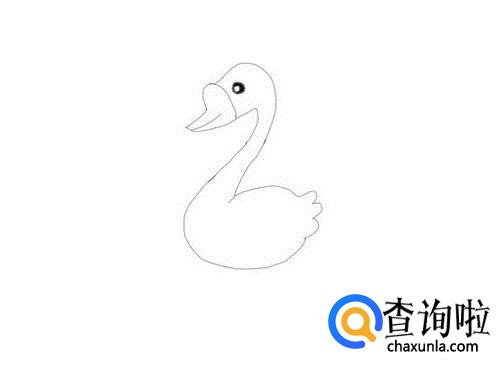 再在头部的基础上画出鹅的脖子,然后再画出鹅的身体和尾巴,如图所示: