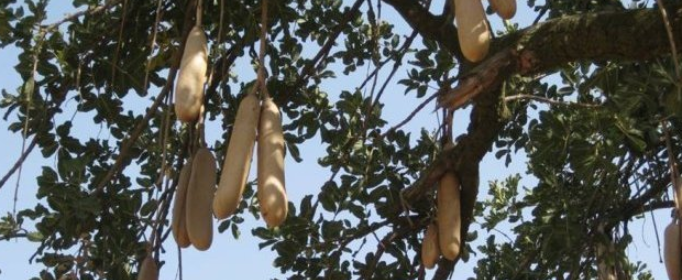 香肠树虽然不是真的结香肠但是它结的果实外形特别的像香肠,这种生长在辽阔的非洲草原上高大树木,每到结果的季节,就会挂满了一个个形似香肠的果实。香肠树不但果实可食,其花也可食,常常是非洲一些动物在一段时期的主要食物。