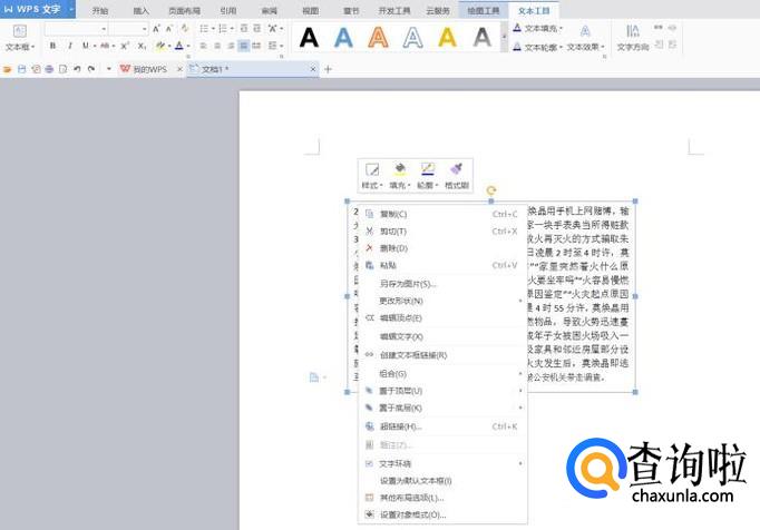 将鼠标光标移动到文本框框线上,点击鼠标右键。