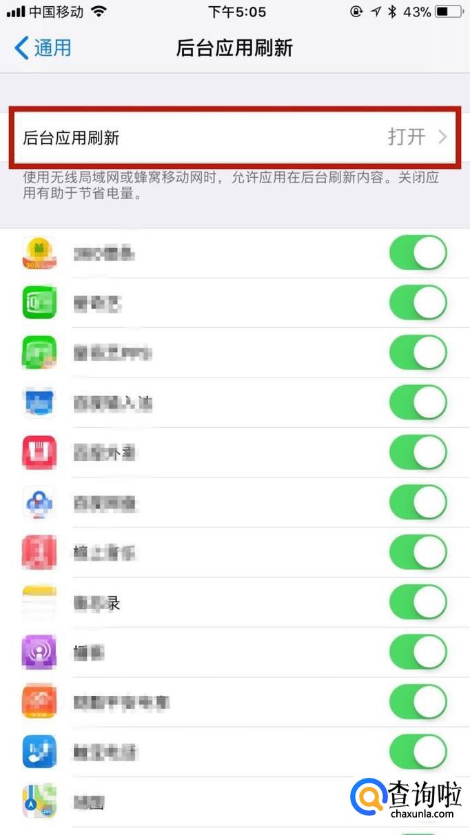 然后点击后台应用刷新,如下图所示。