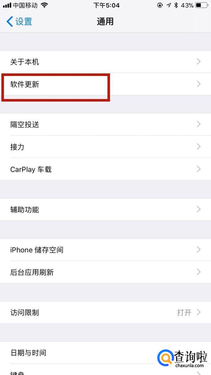 接着点击软件更新,如下图所示。